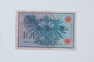 Banknoten 100 Mark, kleiner Schein, orangener Stempel