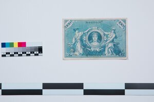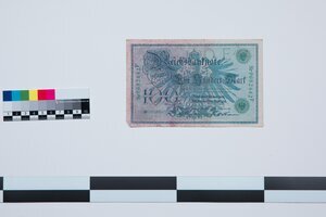 Banknoten 100 Mark, kleiner Schein, grüner Stempel