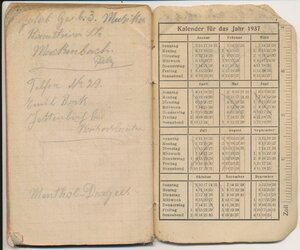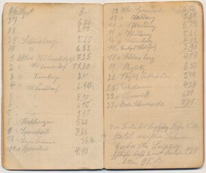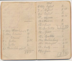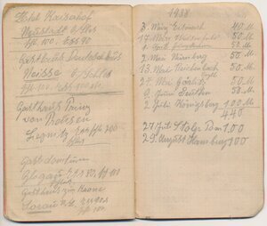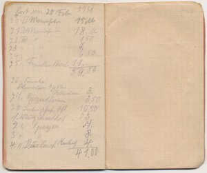 Tageseinnahmen und -Ausgaben des Ludwig Fuchs, Jettenbach, auf seiner Reise in Leipzig und Bamberg im Jahre 1937