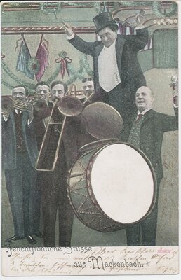 Postkarte „Feuchtfröhliche Grüße aus Mackenbach“ von 1907