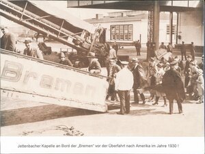 Jettenbacher Kapelle an Bord der „Bremen“ vor der Überfahrt nach Amerika im Jahre 1930! (PE)