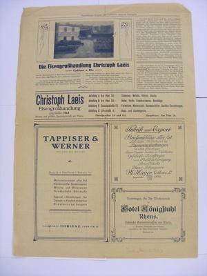 Ausstellungs-Ausgabe des Coblenzer General-Anzeiger, darin: A. Wefelscheid "Die Bendorfer Eisen-Industrie"