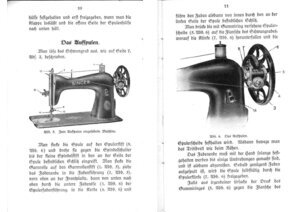 Auf 50 Seiten im DIN A6 Format wir der Gebrauch der Singer Nähmaschine Modell 15 erklärt. 39 Abb in s/w unterstützen die Detailangaben im Text. Während im ersten Teil es primär um den Gebrauch und Pflege der Maschine beschrieben wird ist der 2. Teil dem Gebrauch der mitgelieferten Apparate erklärt. z.Bsp. Einfädlier, Säumer, Kapper, Wattierer usw. Das Cover, aus etwas stärkerer, grüner Pappe ist bedruckt mit Werbung für Singer Nadeln, Singer Garne und Singer Geschäftsstellen in Ihrer Nähe.