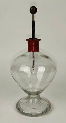 Ein Blättchen-Elektroskop ist ein Gerät zum Nachweis von elektrischen Ladungen. Eine elektrische Ladung ( zum Beispiel erzeugt durch Reibung eines Haarkammes an einem Wollpullover) wird der oben am Gerät sichtbaren Kugel zugeführt. Die beiden Metallblättchen im Innern des Glasbehälters sind über einem Metallstab leitend mit der Kugel verbunden. Wird die Metallkugel mit einem aufgeladenen Gegenstand berührt, verteilt sich die Ladung auch auf die Blättchen und diese stoßen einander daraufhin ab da beide Ladungen die gleiche Polarität besitzen. Solche Lehrmittel wurden im vorigen Jahrhundert im Physikunterricht an technischen Schulen eingesetzt.