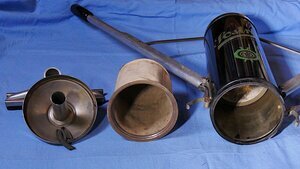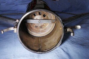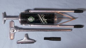 Reise- oder Kinderstaubsauger der Marke Sostro mit vier verschiedenen ansteckbaren Düsen. Der Staubsauger arbeitet rein mechanisch und wird mit Muskelkraft betrieben. Er besitzt einen Blasebalg mit dem der Staub eingesaugt wurde. Die Luftpumpe in seinem Inneren wird mit 2 Hebeln in Gang gesetzt. Der Staub wurde in einem Immerfilter gefangen. Auf dem Gerät steht in großer Schrift unterschtrichen der Schriftzug "Sostro". Darunter steht der Schriftzug "2 D.R.P. - 2 D.R.G.M u. Ausl. Patente": D.R.P steht für "Deutsches Reichs Patent". Leider ist in der Datenbank des Deutschen Patentamts kein passendes Patent zu finden. Der Grund hierfür könnte sein, dass die Patente beantragt aber nicht genehmigt wurden. Eine andere Möglichkeit wäre dass nur ein spezielles Bauteil patentiert wurde. D.R.G.M. steht für "Deutsches Reich Gebrauchsmuster". Die Gebrauchsmuster aus der Zeit vor 1948 sind leider nicht erhalten. Unter den Patenten steht in einem grünen Lorbeerkranz die Initialen MTD. Leider ist über einen Hersteller bzw. die Marke "Sostro" im Web nichts zu finden. Das Produkt scheint auch nicht sehr erfolgreich gewesen zu sein. Es gibt einen Sostro genannten Stadtteil von Ljubbljaja und eine Solarfirma in der Schweiz. Und das amerikanische Unternehmen MTD ist nicht alt genug.