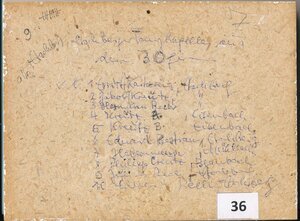 Unüberhörbar: Eine Blechbläserkapelle in den 1930er Jahren vorm Frühschoppenkonzert an einem Sonnenplatz beim Gasthaus. V.l.: Kartarius Ernst, Kreutz Jakob, Rech Hermann (alle Etschberg), Kreutz A., Kreutz B. (alle Eisenbach), Bertram Eduard, Etschberg, Habermann, Mühlbach, Creutz Philipp, Blaubach, Rech Julius, Rech Eduard (alle Etschberg) (PE)