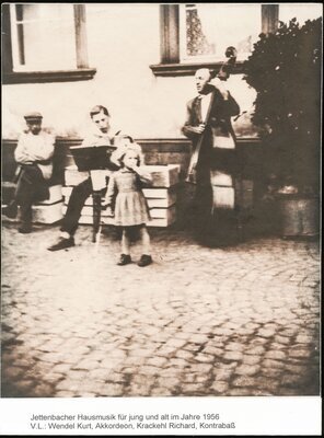 Jettenbacher Hausmusik für jung und alt im Jahre 1956. V.l.: Wendel Kurt, Akkordeon, Krackehl Richard, Kontrabass (PE)