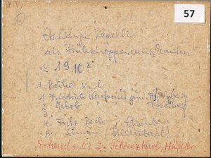 „Streng gescheitelt, würdig gekleidet und voller Ernst bei der Sache!“ Das Bierfass scheint noch voll zu sein! Sitzend v.l.: 1. Kartarius Friedrich jun., 2. Kartarius Jakob, 4. Rech Fritz (alle Etschberg), 5. Simon, Blaubach (PE)