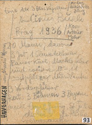 Im Circus (Circus Busch Prag 1936) trafen unsere Musikanten bisweilen auch Böhmen und Tschechen, jenes andere völkische Element der Circusmusikanten. (PE)