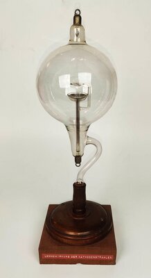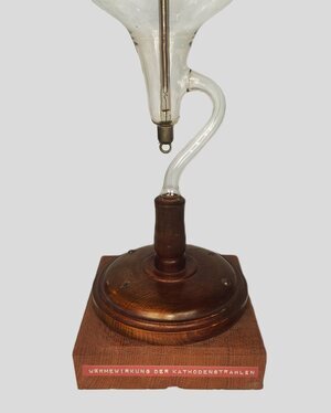 Zur Untersuchung von Kathodenstrahlen ( Elektronenstrahlen ) wurden zu Unterrichtszwecken sogen. Kathodenstrahlröhren verwendet. Diese evakuierten ( annähernd luftleeren Glasröhren ) enthielten zwei Elektroden, die Kathode K und die Anode A. Legte man den Minuspol einer Hochspannungsquelle an K und den Pluspol an A, so trat aus K eine Strahlung aus , die zu A hin beschleunigt wurde. Die Elektronen konnten die Glasröhre nicht durchdringen, ihre Reichweite war auf die Glasröhre beschränkt. Bei dieser Röhre handelt es sich um eine spezielle Röhre zur Untersuchung der Wärmewirkung durch solche Strahlen. Solche Geräte wurden im Physikunterricht an technischen Gymnasien und Hochschulen im vorigen Jahrhundert eingesetzt.