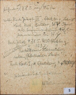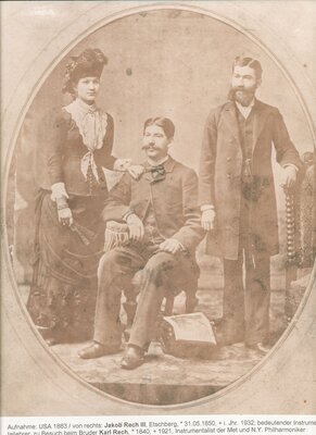 Aufnahme: USA 1883 / von rechts: Jakob Rech III, Etschberg, * 31.05.1850, + im Jahr 1932; bedeutender Instrumentallehrer; zu Besuch beim Bruder Karl Rech, * 1840, + 1921, Instrumentalist der Met [Metropolitan?] und N.Y. Philharmoniker (PE)