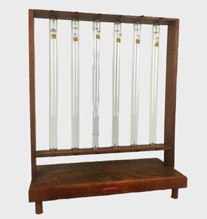 Ein Holzgestell 40 cm breit und 50 cm hoch enthält 6 Stück Glasröhren mit Elektroden an beiden Enden, Die Glasröhren sind verschieden stark , zwischen 0,03 und 40 Torr, evakuiert. Mit dieser sog. Vakuumskala nach Groß konnten im Physikunterricht verschiedene Versuche mit Vakuum durchgeführt werden. >Die Herstellung von Vakuum in Glasröhren, wie es Anfang des 20. Jahrhunderts hergestellt werden konnte, war die Voraussetzung der Einführung von Glühlampen und Elektronenröhren.