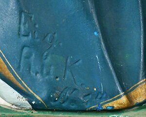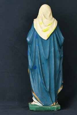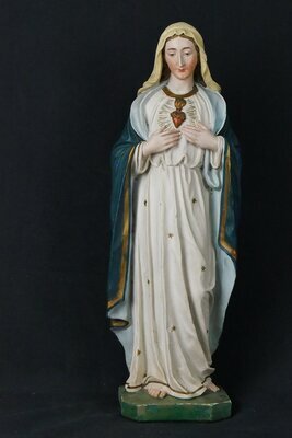 Gipsstatue mit der Darstellung des unbefleckten Herzens Marias. Die Statue steht auf einem Sockel. Sie trägt ein Kopftuch, eine weiße mit goldenen Sternen übersähte Tunika und über dieser ein Tuch in blauer Farbe. Auf ihrer Brust befindet sich ein rotes, brennendes Herz im Strahlenkranz. Es ist analog zu Darstellungen des heiligsten Herzens Jesu, mit einem Kranz goldener Rosen umwunden. Die Rosen symbolisieren die Jungfräulichkeit und Reinheit Mariens. Unten auf der Rückseite der Statue befindet sich unten die Inschrift: Eig. R-u-K- No 14 Die Statue zeigt kaum Abplatzungen, einige restaurierte Stellen, ist aber ansonsten in einem guten Zustand. Die Herz-Mariä-Verehrung richtet sich auf Maria, die Mutter Jesu, als Person, die sich Gott und den Menschen widmete und dem Heilswerk ihres Sohnes unterordnete. Die Herz-Maria-Verehrung geht bis auf die Kirchenväter zurück und kam insbesondere im 17. und im 19. Jahrhundert zusammen mit der Verehrung des Herzen Jesu zur Blüte.