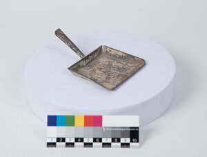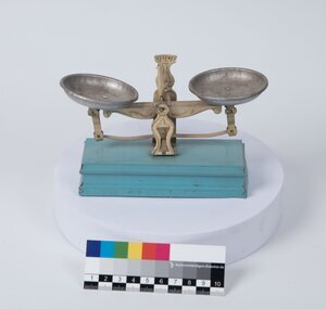 Kinderspielzeug, Blech, dreiteilig, bestehen aus einem Ofen, einer Küchenwaage und einer Kehrschaufel