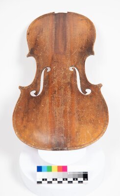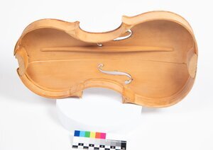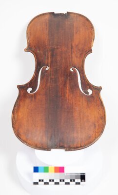 Geigen in verschiedenen Stadien des Baus, Decken, Zargen, Boden, Hälse und Griffbretter