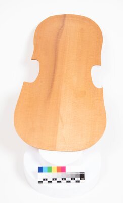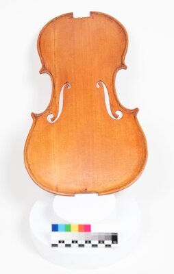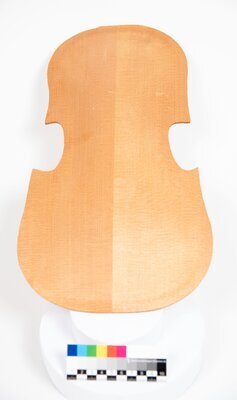 Geigen in verschiedenen Stadien des Baus, Decken, Zargen, Boden, Hälse und Griffbretter