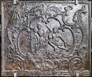 Georg Drumm bei seinem Heimatbesuch im Jahre 1954 (vom 4.3. bis 28.4.), bei dem Landrat Simon von Kusel dem 79-Jährigen ein Ölbild mit einem Heimatmotiv überreicht. (PE) [Bild der Ulmeter Kirche, wo er geheiratet hatte?]