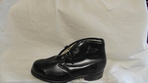 Ein Paar Schwarze Damen-Stiefel aus Kunstleder. Runde Form, Schuhgröße 3,5. Die Schuhe haben einen metallgenagelten Absatz, welcher mit Kunstleder bezogen ist (4,5 cm). Sie verfügen über eine Metallschnalle seitlich am Stiefel und einen Reißverschluss an der Innenseite. Hergestellt für die Marke "Salamander".