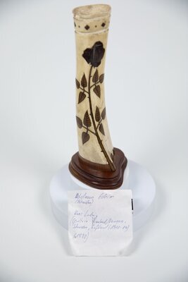 Knochenschnitzerei aus dem Internierungslager Isle of Man: 1 Vase mit Rose (intarisert?), H. 25 cm, Ludwig Knaul, Hinzweiler