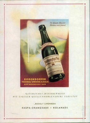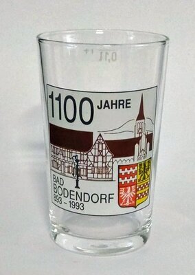 Dekorativen Sammelteller aus weißem Porzellan mit kunstvoller goldener Randverzierung und Mustern und zwei Griffen. Im Zentrum des Tellers befindet sich eine Illustration (100 x 100 mm), die ein coloriertes Bild von Bodendorf (65 x 68 mm) zeigt. Hinter dem Dorf sind Rebanbauflächen, Wald und blauer Himmel darstellt mit dem Schriftzug "Gruß aus Bad Bodendorf". Die Szene ist von einem kunstvollen umgeben mit goldenem Design. Dekor Innen 100 x 100 mm, Bild 65 x 68 mm; Durchmesser mit Griffen 240 mm.