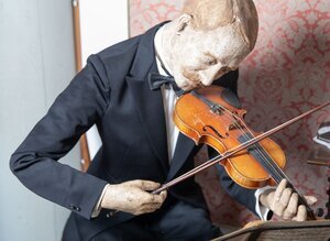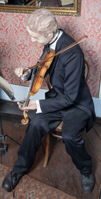 Kleidung, nach historischem Vorbild geschneidert, Abendgarderobe (je Figur Hemd, Hose, Schuhe, Krawatte, Jackett),