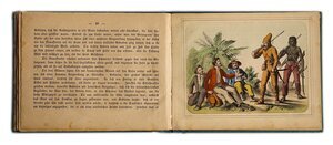 Von der Mainzerin Kathinka Zitz-Halein überarbeitete Ausgabe des Buches "Robinson Crusoe". Das Buch wurde etwa um 1860 von dem ehemaligen Mainzer Joseph Scholz Verlag herausgegeben. Kathinka Zitz-Halein hat das Buch "für die Jugend bearbeitet", wie es auf Seite 3 des Buches geschrieben steht. Die Seite 11/12 fehlt. Insgesamt umfasst das Buch 48 Seiten und 7 kolorierte Abbildungen.