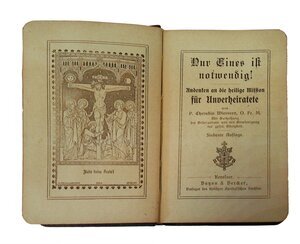 Der Umschlag besteht aus schwarz bedruckter Pappe. Auf der Vorderseite ist ein hervorgebobendes Kreuz in den Decken und eine Umrahmung geprägter. Das Buch soll ein christlicher Leitfaden für alle Unverheiratete sein, wie es im Vorwort beschrieben ist. Das Inhaltsverzeichnis für die Leitfäden in den Seiten 1 bis 286 ist auf den Seiten 287 und 288 zu finden.