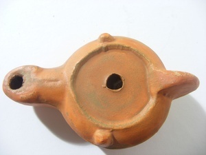 Römische Öllampe aus Ton; gelbliche Scherbe; Fundort: Bendorf