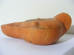 Römische Öllampe aus Ton; gelbliche Scherbe; Fundort: Bendorf