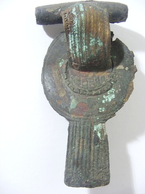 Römische Fibel bzw. Gewandnadel; sog. Distelfibel aus Bronze