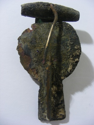 Römische Fibel bzw. Gewandnadel; sog. Distelfibel aus Bronze