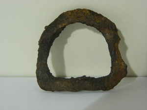 Korrodierte D-förmige Eisenschnalle ohne Dorn; römerzeitlich? Fundort: Bendorf