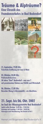 Träume & Alpträume - Eine Chronik des Fremdenverkehrs in Bad Bodendorf - zeichnete die Entwicklung seit der ersten Quellbohrung 1900 bis zum Niedergang der Kurentwicklung in Bad Bodendorf auf. Die Ausstellung fand im (ehemaligen) Saal der Winzergastätte statt. Träume, weil man viel vorhatte und bis in die 1960er Jahre auch kräftig investierte. Aber auch Alpträume, weil für die die Familie, bisher die treibende Kraft, es nicht mehr möglich war die Weiterentwicklung fortzuführen. Mit dem Verkauf und dem Einstieg verschiedener wechselnder Investoren begann der Alptraum. Die Ausstellung war aber noch nicht das endgültige aus. Heute ist die Ausstellung in der Trinkhalle und im Wandelgang im Kurpark aufgestellt.