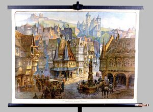 Schulwandbild "Das Innere einer Stadt im XV. Jahrhunderts"