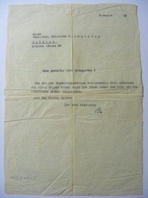 Brief Friedrich Baumgarten 1955 betreffend Sayner Hütte