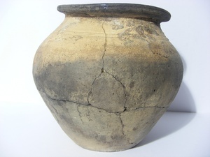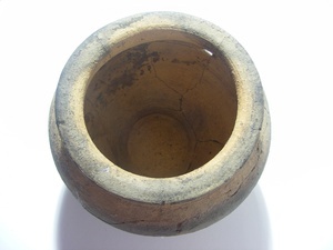 Römerzeitlicher Schultertopf aus Ton (bräunliche Scherbe). Fundort: Bendorf