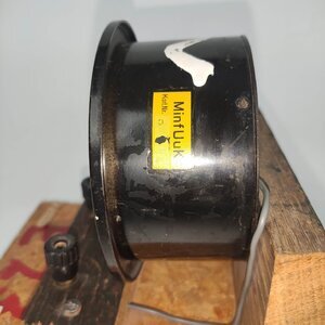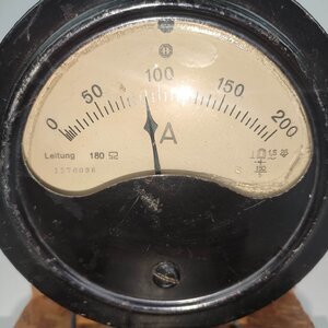 Elektrisches Messgerät : Amperemeter: Bereich 0 – 100 A. Bei diesem Messgerät handelt es sich um ein Drehspulinstrument. Die Wirkungsweise des Drehspulinstruments beruht auf der Kraft, die auf stromdurchflossene Leiter( hier in Form einer Spule) im Feld eines Dauermagneten wirkt. Der Magnet hatte früher allgemein die Form eines Hufeisens, heute werden verschiedene Bauformen ausgeführt. Das gezeigte Instrument ist für die Messung von sehr hohen Strömen bis 100 Ampere ausgelegt. Durch den im Instrument eingebauten Gleichrichter können Gleich- und Wechselströme gemessen werden. Vermutlich wurde das Gerät für schulische Zwecke mit Holzrahmen und Steckerklemmen versehen.