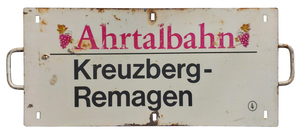 Zugschild während der Sonderfahrten von Düsseldorf nach Kreuzberg/Ahr