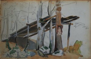 In Bildmitte im Vordergrund ist der Bahnhof und die rechts danebenliegende, die abgerissene, Toilettenanlage zu sehen. Im Hintergrund zu erkennen der Weg auf der sich schlängelnde Weg auf Reisberg mit links (Sonnenseite) Weinanbauflächen und rechts Obstpantagen. Im Bild ist nur die westliche Dorfseite gezeigt und ist den 1930er Jahre aufgenommen.