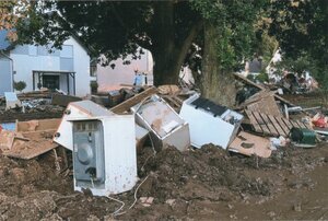 Ein prallgefüllter Ordner mit 40 Fotos und 141 Presseartilkel von Rheinzeitung-Online aus der Zeit 14. Juli bis 04. Oktober 2021 über die Flutkatastrophe an der Ahr, der Mosel und in Nordrhein-Westfalen. In den Bildern sind Aufnahmen aus der Flutnacht und von den ersten Taen nach der Flutnacht. Sie zeigen die Ausmaße der Zerstörung alleine in Bad Bodendorf. Die Presseartiken berichten über die Warnungen der Landesbehörde, der Flutnacht, den Bemühungen der Betroffenen mit der Situation zurecht zu kommen, Analysen wie es zur Katastrophe kam und die wirtschaftlichen Folgen für Winzer und Gewerbe.