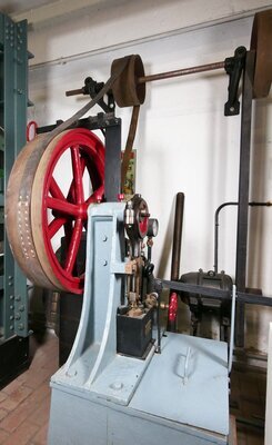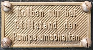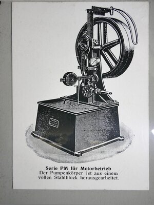 Die Pumpenanlage des Herstellers Wilhelm Knod & Co wurde benötigt, um für eine Hydraulische Kelter den notwendigen Wasserdruck zu erzeugen. Das Gerät besteht aus einem Wassertank, einem Sperrhahn, der eigentlichen Pumpe und einer Wasserdruckanzeige. Im Gegensatz zu späteren Modellen ist der Elektromotor (von AEG) nicht zusammen mit der Pumpe in einem Gehäuse verbaut, sondern wird über eine Transmissionsanlage an diese angeschlossen. Die Pumpe stammt aus dem Bestand der Staatsdomäne Roscheider Hof.