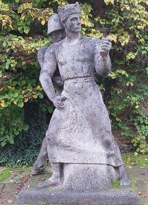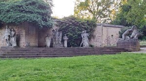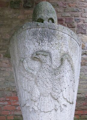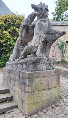 Die heute im Speyerer Domgarten aufgestellte Skulpturengruppe der salischen Kaiser mit Begleitfiguren wurde ab 1930 von dem Bildhauer Ludwig Cauer entworfen und 1940 als Auftragsarbeit des NS-Reichsinnenministers Dr. Wilhelm Frick fertiggestellt. Wilhelm Frick war u. a. wesentlich an der Verabschiedung der “Nürnberger Gesetze” beteiligt. Diese Gesetze bildeten die Grundlage für Diskriminierung und Verfolgung der jüdischen Bevölkerung. Wilhelm Frick wurde 1946 vom Internationalen Militärgerichtshof in Nürnberg als Hauptkriegsverbrecher zum Tode verurteilt und im gleichen Jahr hingerichtet. Der Künstler Ludwig Cauer stammt aus einer weitverzweigten Bildhauerfamilie. Sein bildhauerisches Werk war bis 1930 einem historistisch-klassischen Stil verpflichtet. In seinem letzten Werkkomplex, der Gruppe der salischen Kaiser, hat er sich zunehmend einer nationalsozialistischen Kunstauffassung genähert. Cauer war Mitglied der NSDAP und ist 1944 in der vom Reichsministerium für Volksaufklärung und Propaganda unter Joseph Goebbels herausgegebenen Liste der „Gottbegnadeten“ aufgeführt. 1941 wurde die Skulpturengruppe in der Preußischen Akademie der Künste in Berlin ausgestellt und dann nach Speyer verbracht. Bischof und Domkapitel waren mit der ursprünglich geplanten Aufstellung im Dom nicht einverstanden und verhielten sich hinhaltend. Bereits 1940 hatte der Reichsinnenminister dem damaligen Oberbürgermeister der Stadt Speyer Karl Leiling versichert, dass er die Figuren der Stadt als Geschenk vermache. Die zunächst beschlossene Aufstellung in der Domvorhalle wurde während des Zweiten Weltkriegs nicht mehr ausgeführt. In der Folgezeit gerieten die Skulpturen zunächst in Vergessenheit. Sie lagerten bis 1950 in Kisten verpackt im Hof des Landesarchivs, wo sie ab 1951 provisorisch platziert wurden. Nach langen Diskussionen in der Öffentlichkeit und im Stadtrat wurden sie schließlich 1964 im Domgarten am jetzigen Standort aufgestellt. Die künstlerische und kunstpolitische Bedeutung der Figurengruppe ist bis heute wegen ihres Entstehungszusammenhangs in der NS-Zeit umstritten. Das Foto des Speyerer Fotografen Franz J. Klimm aus den späten 1960er Jahren zeigt im Vordergrund zwei der insgesamt vier aus Muschelkalk gearbeiteten Gruppen der salischen Kaiser. Links ist Heinrich V. dargestellt, der in der Linken eine Schriftrolle trägt, die das "Wormser Konkordat" symbolisieren soll. Rechts kämpft Heinrich IV. mit einem Wolf, dem er die Krone vom Haupt zu reißen versucht. Die weiteren Fotos bilden die aktuelle Aufstellung der Skulpturen im Jahr 2022 ab. [Ludger Tekampe]