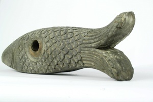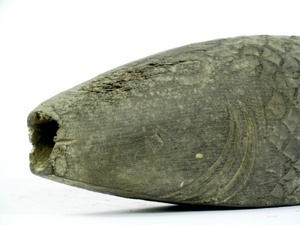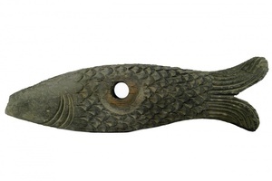 Fassriegel in Gestalt eines Fisches mit langem, glattem Kopf und zweigeteilten Schwanzflossen.