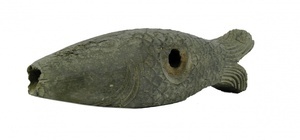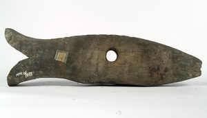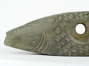 Fassriegel in Gestalt eines Fisches mit langem, glattem Kopf und zweigeteilten Schwanzflossen.