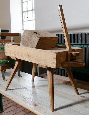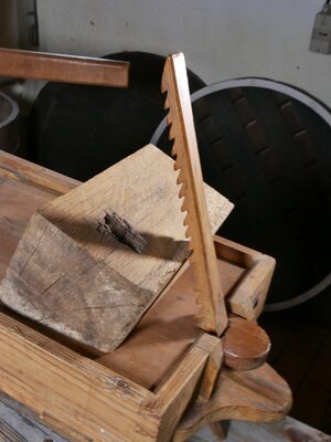 Die Wippkelter ist eine sehr einfache Frucht- und Traubenpresse zu Entsaften von Früchten. Sie sind seit dem 2 Jh. v. Chr. bekannt. Die Wippkelter im Museum besteht aus vier Füßen und einer Bodenplatte mit einem Rand. An dessen Ende ist mit Scharnieren eine gleich große Deckplatte angebracht. Legt man Früchte auf die untere Platte, so kann man sie mit der oberen Platte zerquetschen. Unterstützend ist ein Holzklotz und eine gezähnte Latte die als Hebel eingesetzt werden kann. Der Saft läuft über Rinnen in der unteren Platte und einen Ausguss aus.
