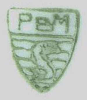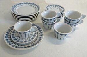Dickes Hotelporzellan Form 1909 (Form Glatt) mit Dekor 525. Porzellengeschirr für das Hotel Eden in Berlin. Das Dekor ist in die weiße Grundglasur gemalt. Nach dem Brennen wurde in einem weiteren Schritt eine Deckglasur aufgebracht. Als Dekor ist in Blau als Punkte in einem ca. 1 cm Kreise gemalt. Im Kreis sind 8 Striche als Stern gemalt mit einem Punkt im Zentrum. Bei den Tellern gehen von den Kreisen je 5 Punkte Richtung Tellermitte ab, die in einen umlaufenden Kreis aus Punkten führen. Bei den Tassen sind die Kreise oben angeordnet und zum Tassenboden hin Linien aus Punkten gezeichnet.