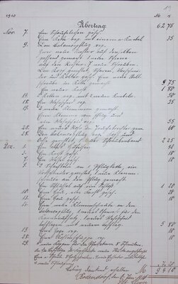 Rechnung an Ww. Hubert Karaus für Arbeiten in 1910