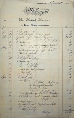 Rechnung an Ww. Hubert Kraus vom 01.01.1912für Arbeiten 1911