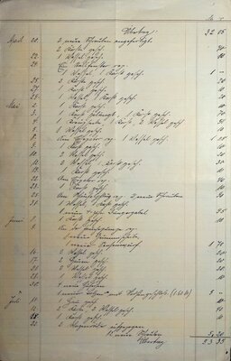 Rechnung von Peter Clever über Schmiedearbeiten bei der mit Auflistung der Arbeitstage pro Monat.