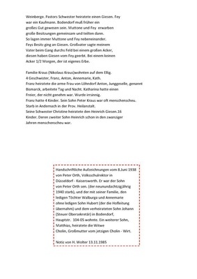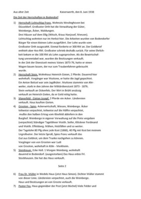 Auf 2 handschriftlichen Seiten wurden die Herrschaften, Verflechtungen und Hintergrundinformationen zu Bodendorfer Persönlichkeiten aufgelistet.